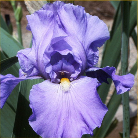 Medium blue lavender Self with white beard tipped yellow in the throat.