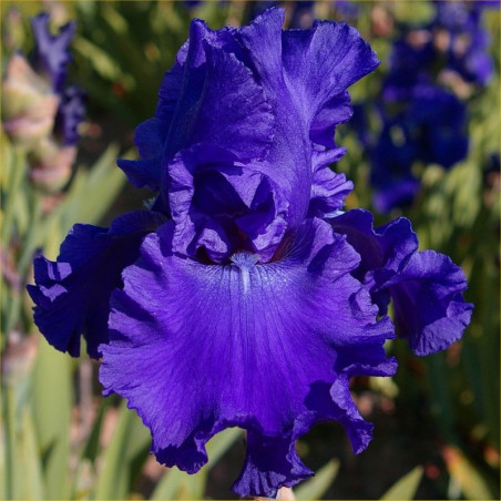 Heavily ruffled deep blue-violet Self with blue-violet beards.